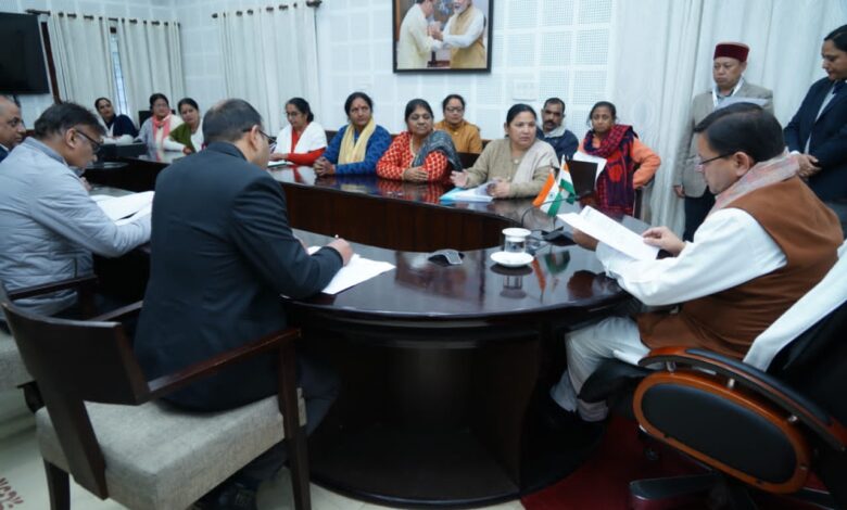 देहरादून। मुख्यमंत्री पुष्कर सिंह धामी से रविवार को मुख्यमंत्री आवास स्थित कैम्प कार्यालय में उत्तराखण्ड आशा स्वास्थ्य कार्यकत्री यूनियन, आंगनबाड़ी कार्यकत्री, सेविका कर्मचारी यूनियन तथा उत्तराखण्ड भोजन माता कामगार यूनियन के पदाधिकारियों ने मुलाकात की।